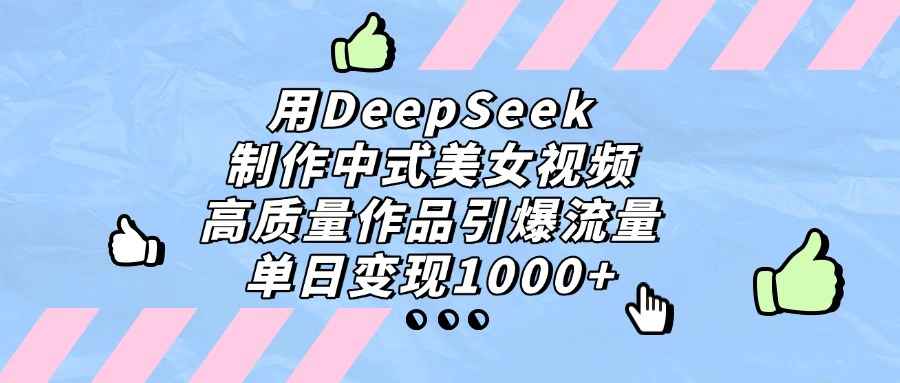 用DeepSeek制作AI中式美女视频,高质量作品引爆流量! 作者:Mike Chen 时间:2025年11月15日 分类:站长分享 字数:385 用DeepSeek制作AI中式美女视频,高质量作品引爆流量!项目介绍这类中式古风美女作品在抖音、快手非常受众,中国风、古风、美女等等元素本来就是热点接下来我手把手教你们如何借助 deepseek 生成高质量的古风美女视频用DeepSeek制作AI中式美女视频,高质量作品引爆流量!课程目录项目介绍+项目准备项目实操+变现方式学习地址:点击进入
